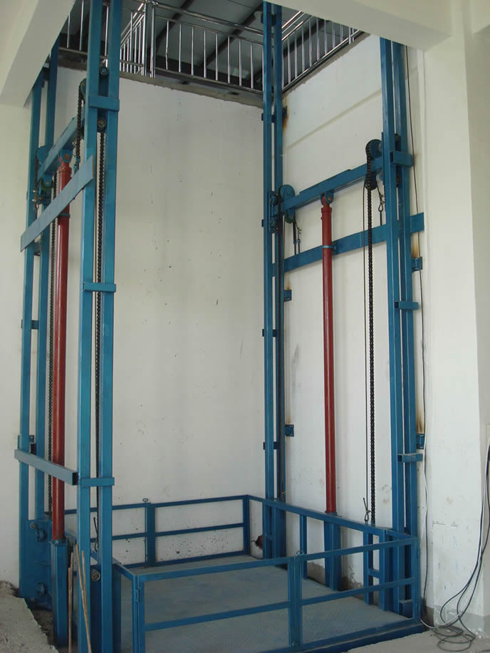 鏈條導(dǎo)軌式液壓升降貨梯是一種非剪叉式液壓升降機械設(shè)備.用于二三層工業(yè)廠房,餐廳,酒樓樓層間的貨物傳輸.最低高度在150-300mm,優(yōu)其適合不能開挖地坑的工作場所.并且無須上部吊點,形式多樣化(單柱,雙柱,四柱).設(shè)備運行平穩(wěn),操作簡單可靠,貨物傳輸經(jīng)濟便捷.